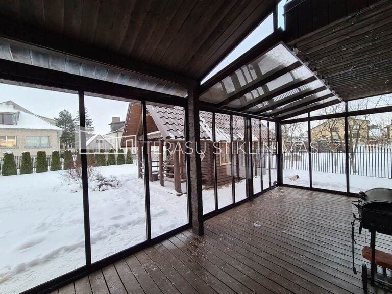 - Apsauga nuo oro sąlygų: Tokios terasos taip pat apsaugo nuo lietaus, vėjo, sniego ir kitų nepalankių oro sąlygų. Todėl jūs galėsite mėgautis terasa net ir nepalankiomis oro sąlygomis.